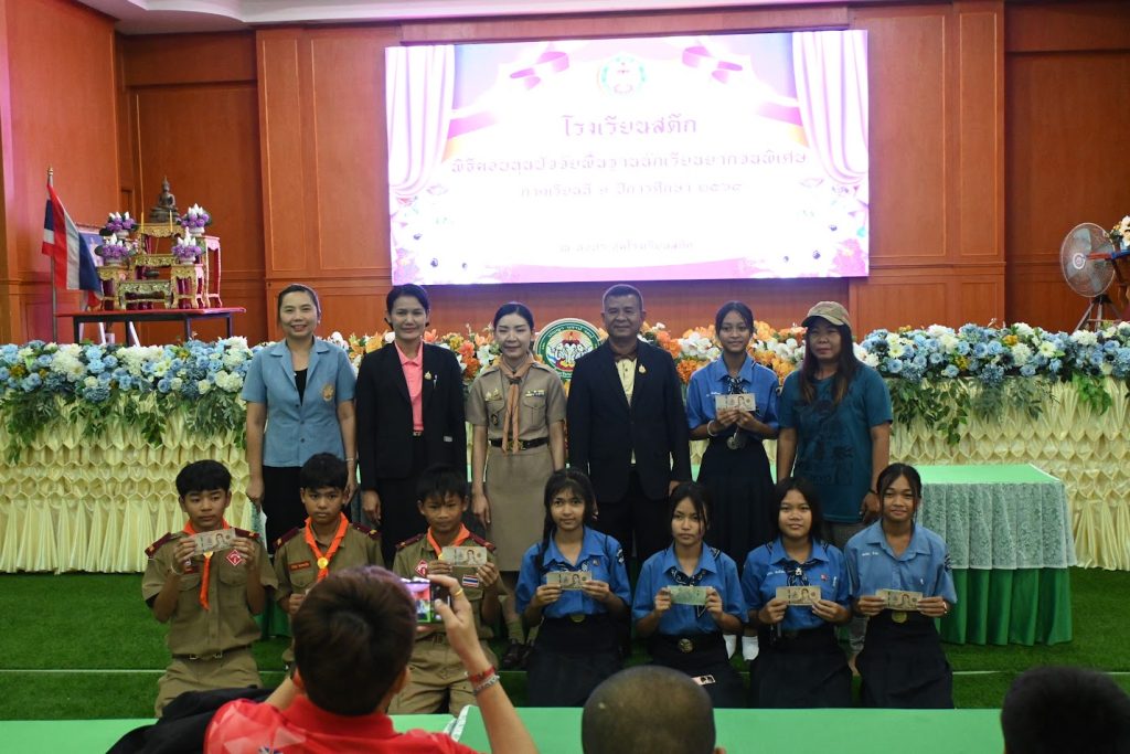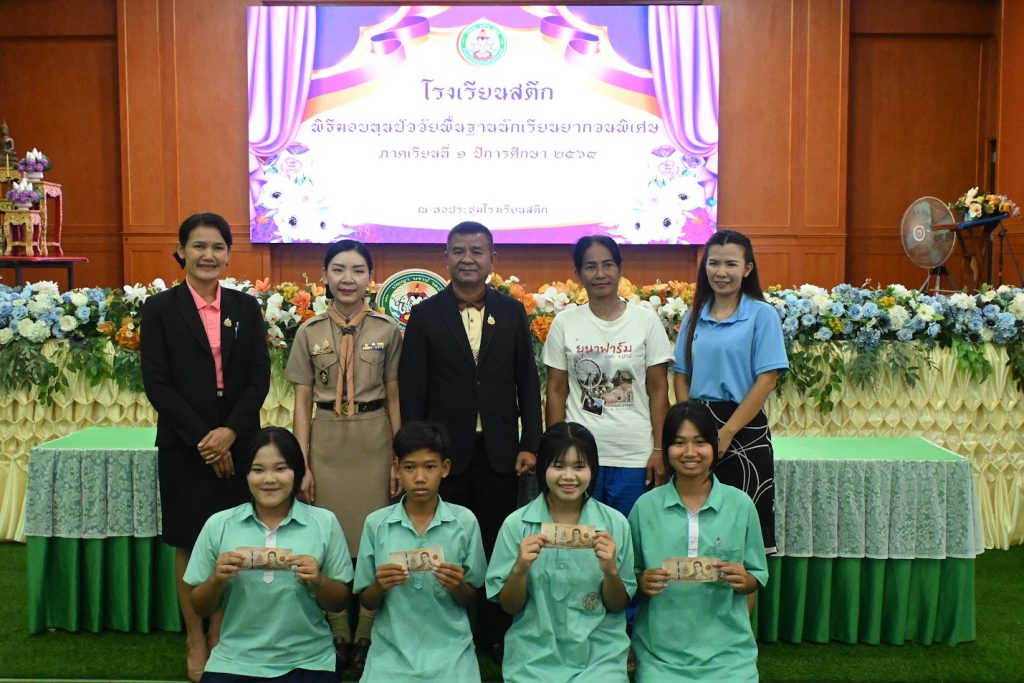 วันพุธที่ 17 กันยายน 2568 โรงเรียนสตึกมอบทุนปัจจัยพื้นฐานนักเรียนยากจนพิเศษ ภาคเรียนที่ 1 ปีการศึกษา 2568 จำนวน 143 ทุน ทุนละ 1,920 บาท ณ หอประชุมโรงเรียนสตึก