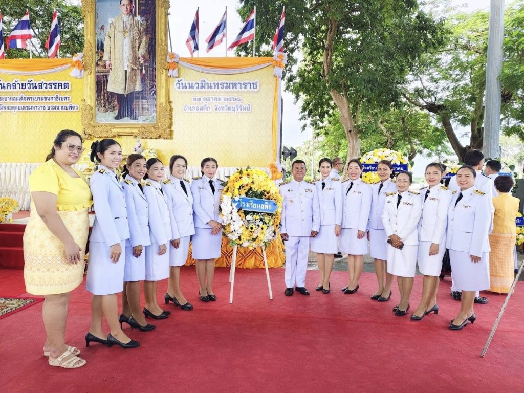 13 ตุลาคม 2568 โรงเรียนสตึก นำโดย นายธัชเวชช์ ศานติบูรณ์ ผู้อำนวยการโรงเรียน พร้อมฝ่ายบริหาร คณะครูและบุคลากร ร่วมพิธีวางพวงมาลา เนื่องในงาน “วันนวมินทรมหาราช” วันคล้ายวันสวรรคตพระบาทสมเด็จพระบรมชนกาธิเบศร มหาภูมิพลอดุลยเดชมหาราช บรมนาถบพิตร ณ โดมอเนกประสงค์ สวนเฉลิมพระเกียรติ 72 พรรษา อำเภอสตึก โดยมีหัวหน้าส่วนราชการ หัวหน้าหน่วยงานรัฐวิสาหกิจ ผู้บริหารสถานศึกษา ผู้บริหารองค์กรปกครองส่วนท้องถิ่น ข้าราชการ พนักงาน และลูกจ้างในสังกัด ภาคเอกชน ภาคประชาชน เข้าร่วมกิจกรรมในครั้งนี้
